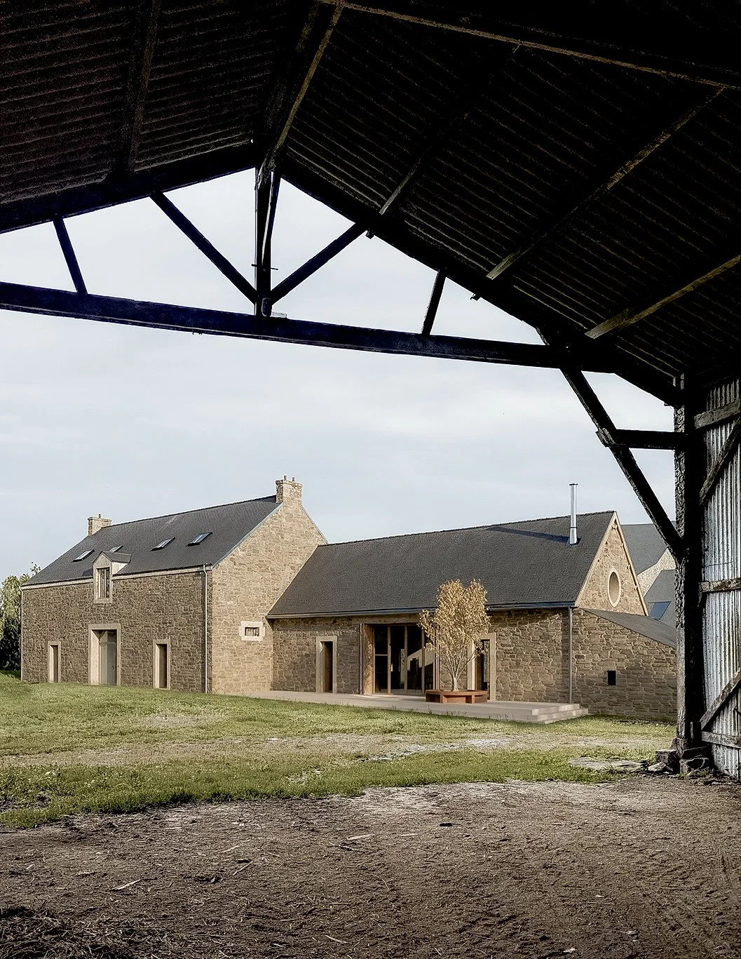 À Grand-Champ, au cœur du pays vannetais, une longue bâtisse rurale se déploie entre cour, jardin et champs. Composée d’une longère, d’une grange et d’une ancienne étable, l’ensemble a conservé son identité mais porte les marques du temps. Le projet répond à la volonté des propriétaires de remettre la maison à niveau avec une rénovation soignée, guidée par le bon sens constructif et l’usage de matériaux sains.
